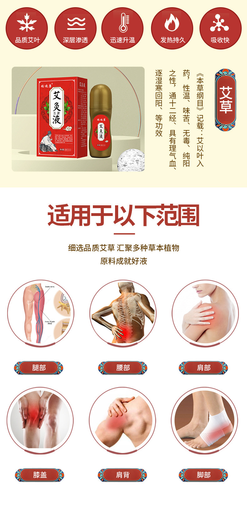 瑞迪康艾灸液頸椎膝蓋舒筋活絡(luò)液家用滾珠式艾灸按摩液源頭廠家